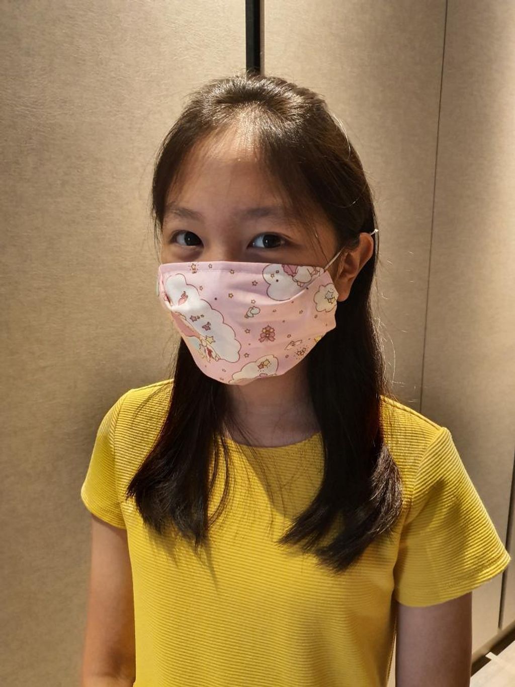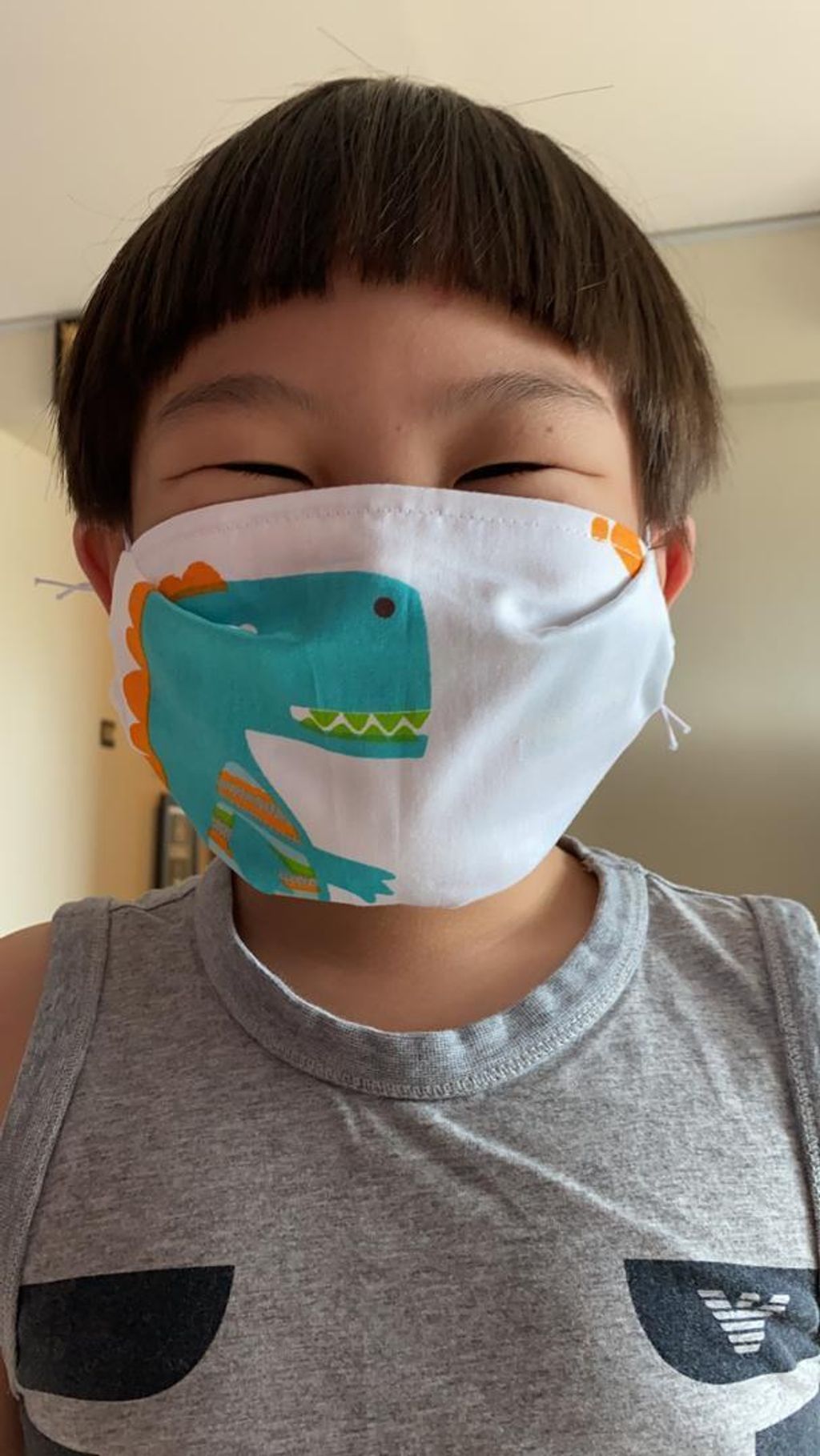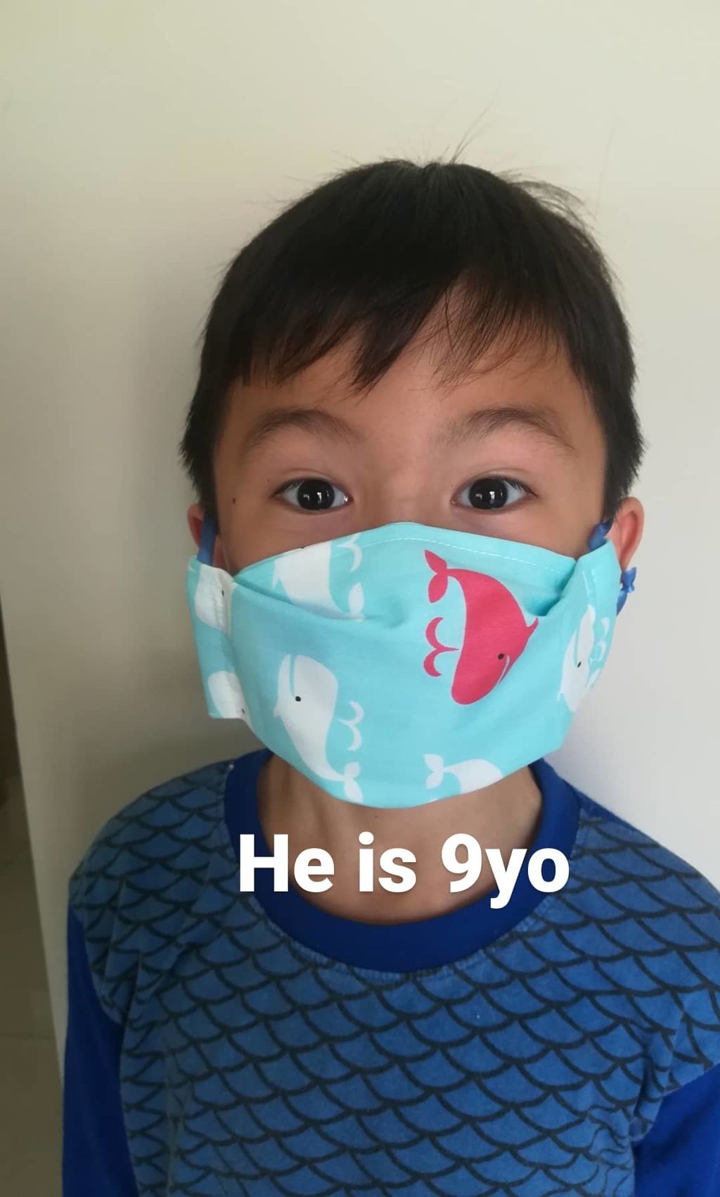 It is suitable for kids age 4yo till 12yo, depending on face size. Size can be adjusted by adjusting the elastic, and adjust fold of the fabric if it is disturbing the eyes. Also suitable for ADULTS with smaller face. See sample above for Adult, 13yo, 8yo and 4yo