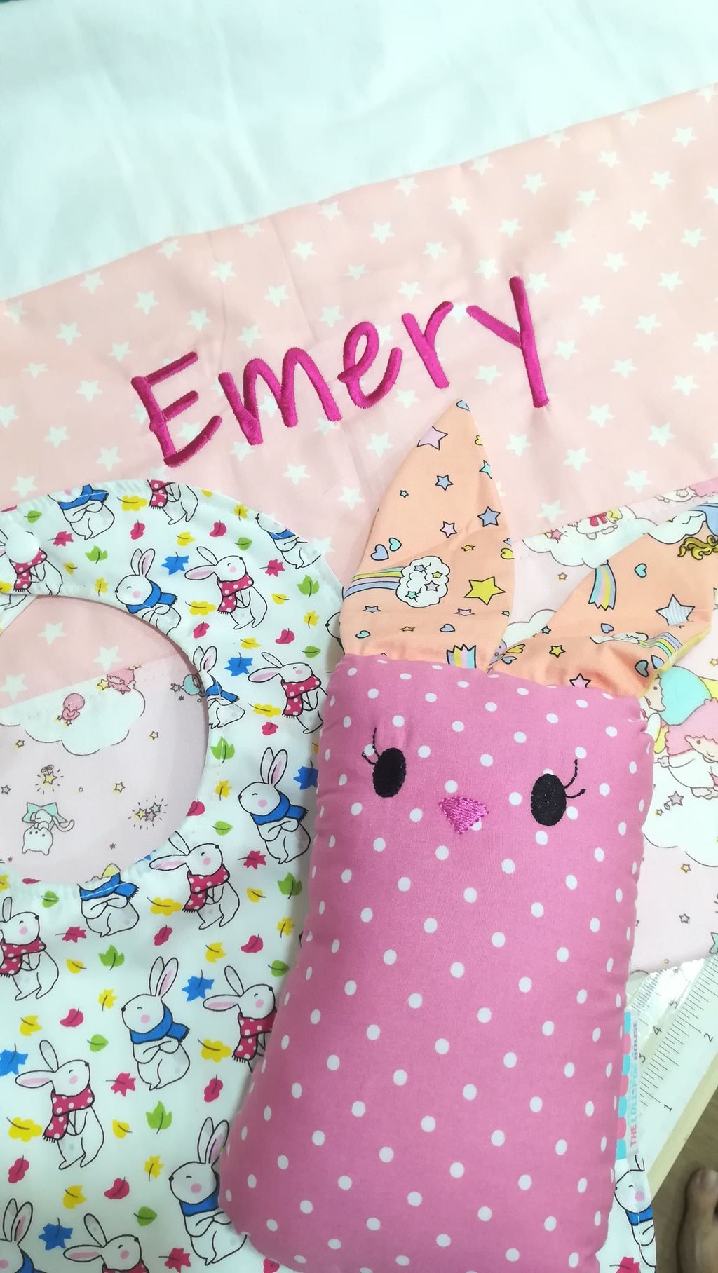 For custom order with name embroidery, please feel free to drop me a message with the child's name with correct spelling, font and font colour choice.